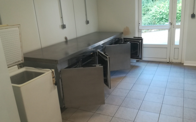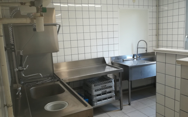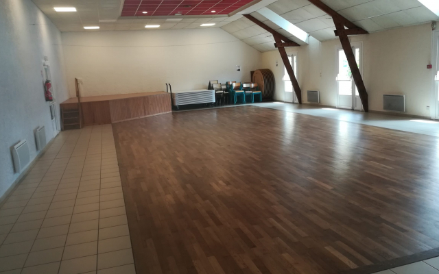 Elle se compose d’une grande salle avec bar et estrade, grande cuisine équipée (cuisinière, lave-vaisselle, frigo, congélateur…), vestiaire, toilettes.